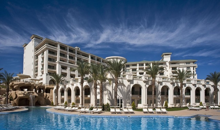 This luxurious 5-star resort is located on a private beach at scenic Na'ama Bay’s entrance. The resort offers 3 gourmet restaurants, state-of-the-art dove training and a 600 m2 spa.